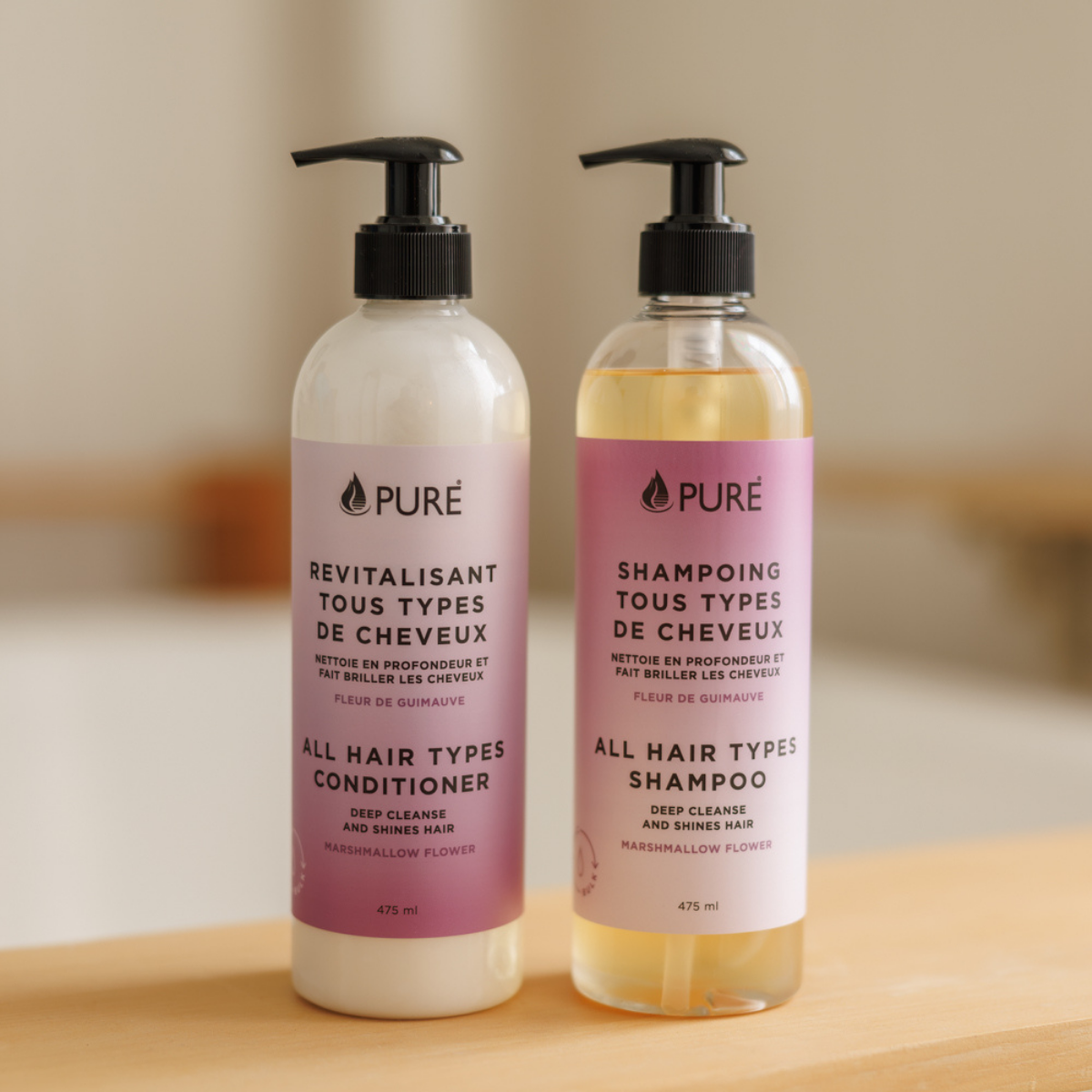 Pure vous propose une gamme de soins capillaires écoresponsable et innovante pour une chevelure resplendissante et en santé, sans compromis. Fait à partir des ingrédients actifs de la nature.
