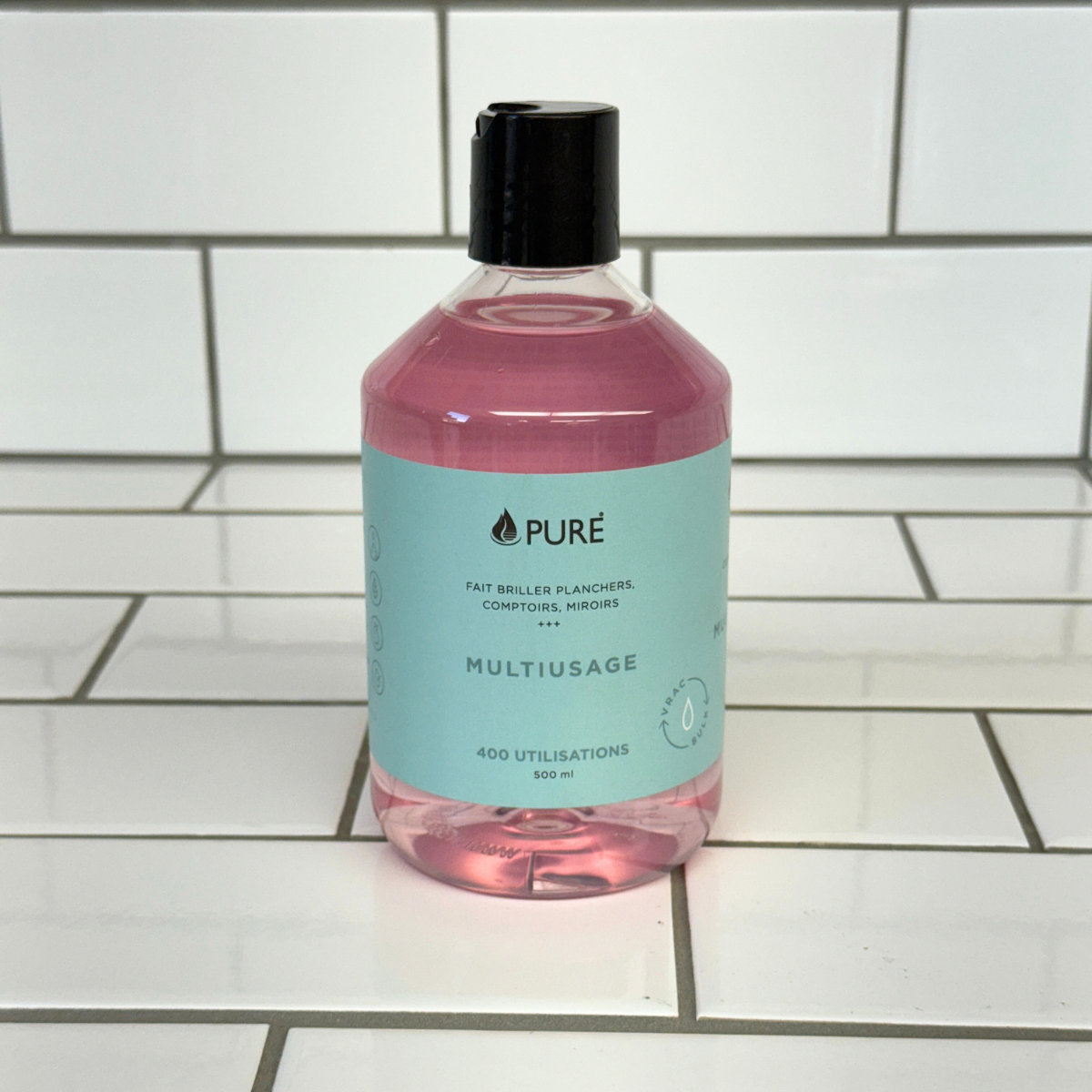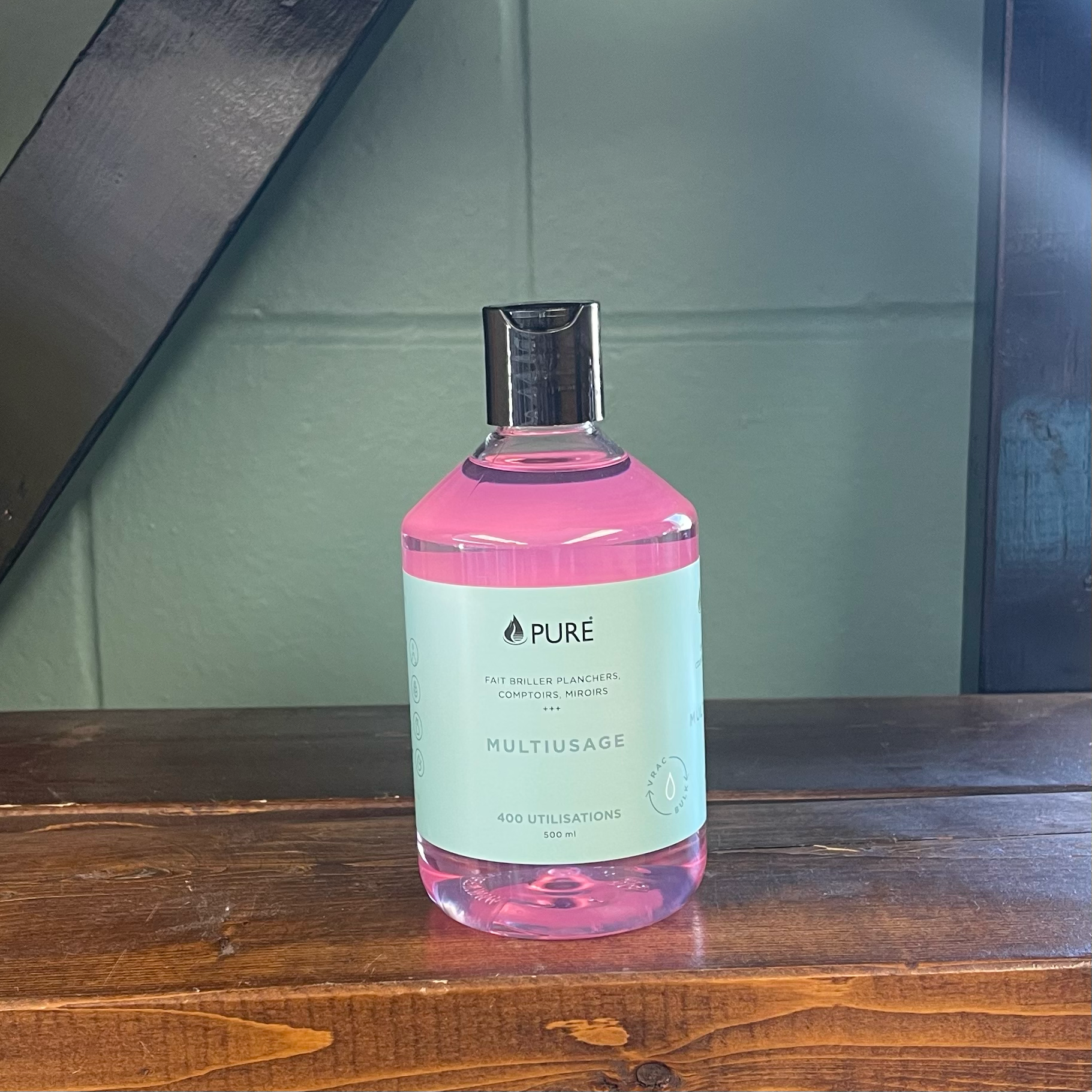 À base d’ingrédients naturels comme l’eau de rose, le multiusage ultraconcentré affiche une redoutable efficacité, tant à l’intérieur qu’à l’extérieur de la maison! Reconnu sous le nom du produit rose, il est un essentiel dans une maison! La liste est longue de tout ce que le multiusage peut laver : plancher, vitre, comptoir, escalier, déco, auto, bateau, kayak, paddleboard, etc!