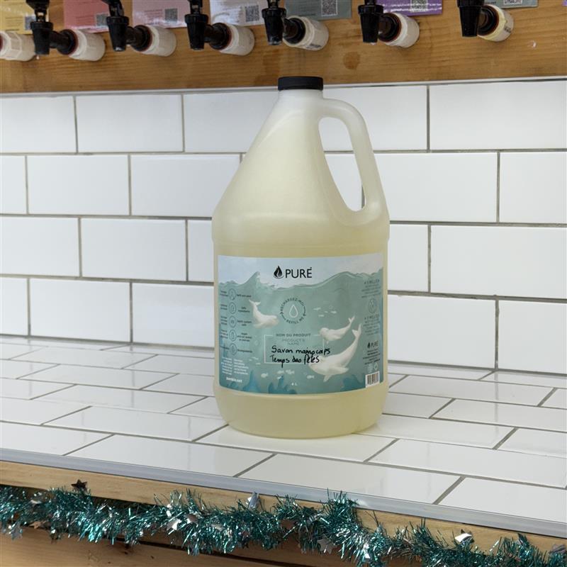Le savon mains/corps vous simplifie la vie. C’est celui qui va partout (évier de cuisine, de salle de bain, dans la douche, dans le sac de gym, name it!). C’est celui aussi qui plaît à tout le monde. Avec ses ingrédients naturels et sa formule douce, il convient à tous les types de peaux, jusqu’aux plus sensibles. Offert en vrac, vous pourrez réutiliser votre bouteille à chaque Noël.